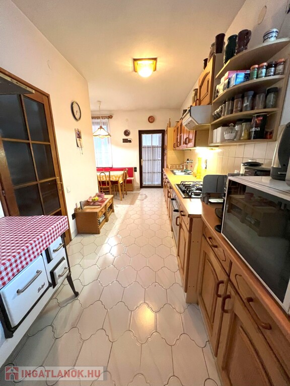 Telek: Az udvar gondozott, részben térkövezett, melyet díszes bokrok és árnyat adó fák tesznek hangulatossá. A 640 m²-es telken található egy 28 m²-es, téglaépítésű melléképület is, amely számos lehetőséget kínál: jelenleg nyári konyhaként és raktárként funkcionál, azonban kialakítása révén akár egy kényelmes vendégházzá is alakítható. A vizesblokk már ki van építve, így a felhasználási lehetőségek szinte korlátlanok. A nyári hőségben a locsolásról fúrt kút gondoskodik.