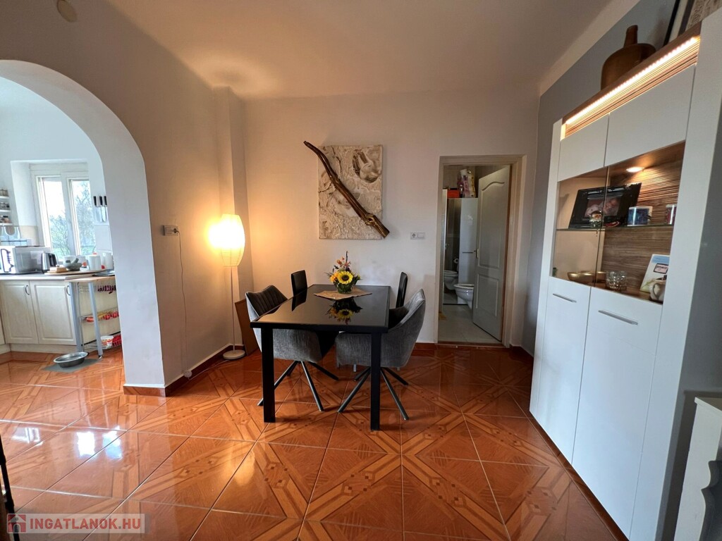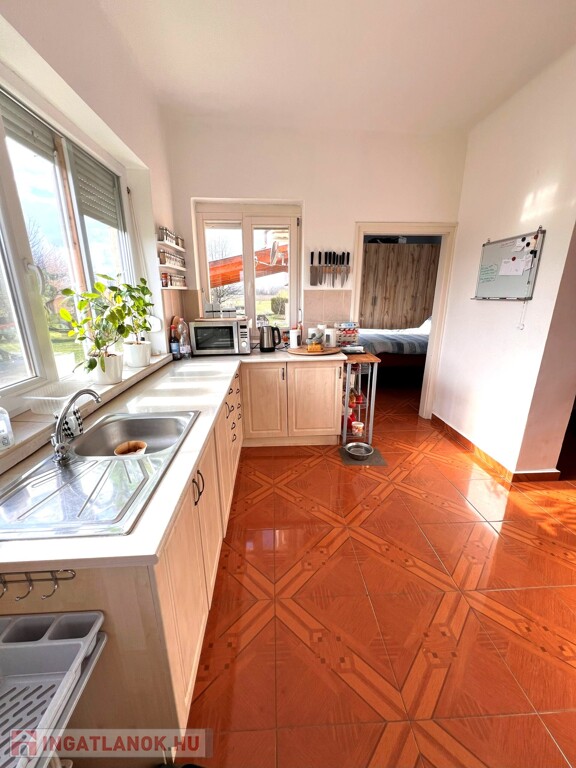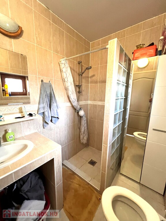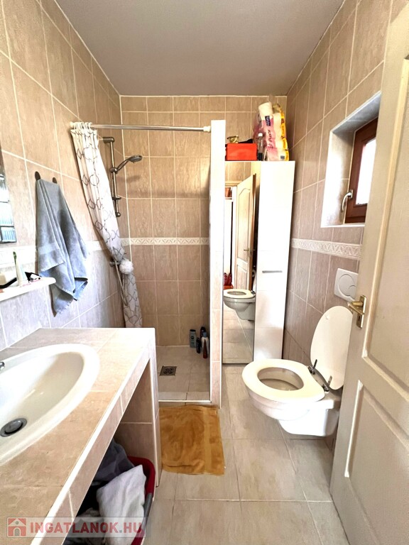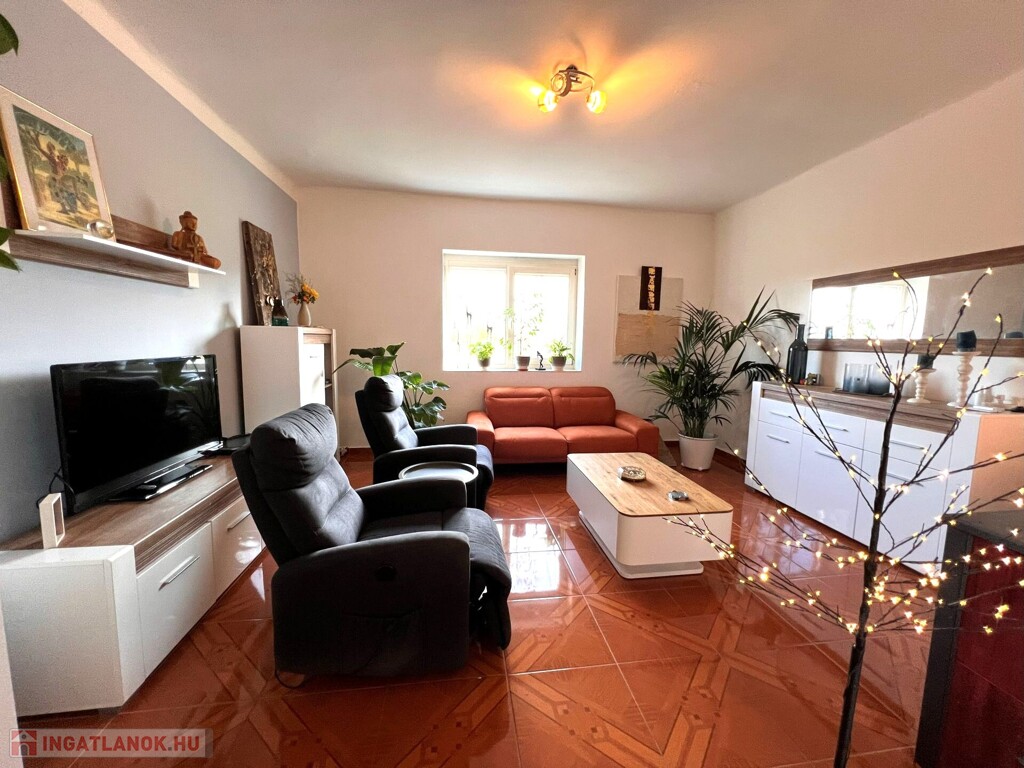 Az ingatlan jellemzői Az első lakrész 57 m²-es, és egy világos konyhából, hálószobából, étkezőből, zuhanyzós fürdőszobából és hangulatos nappaliból áll. A hátsó, külön bejáratú vendéglak 25 m², amelyben egy nappali konyhával és étkezővel, egy zuhanyzós fürdőszoba, valamint a tetőtérben két helyiség – köztük egy hálószoba – kapott helyet. Az ingatlan műanyag nyílászárókkal, szúnyoghálóval és redőnnyel felszerelt, a tető jó állapotú. A ház mellett egy kellemes, fedett terasz is várja az új tulajdonost.