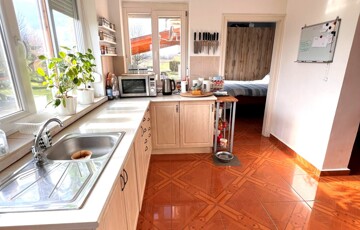 Az ingatlan jellemzői Az első lakrész 57 m²-es, és egy világos konyhából, hálószobából, étkezőből, zuhanyzós fürdőszobából és hangulatos nappaliból áll. A hátsó, külön bejáratú vendéglak 25 m², amelyben egy nappali konyhával és étkezővel, egy zuhanyzós fürdőszoba, valamint a tetőtérben két helyiség – köztük egy hálószoba – kapott helyet. Az ingatlan műanyag nyílászárókkal, szúnyoghálóval és redőnnyel felszerelt, a tető jó állapotú. A ház mellett egy kellemes, fedett terasz is várja az új tulajdonost.